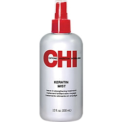 CHI Keratin Mist is a leave-in strengthening teatment with Cationic Hydration Interlink proteins. Specifically developed to work in conjunction with the CHI line. CHI Keratin Mist is an advanced leave-in spray designed to provide hair with strength, protection and softness, while leaving hair silky and shiny with incredible manageability.
