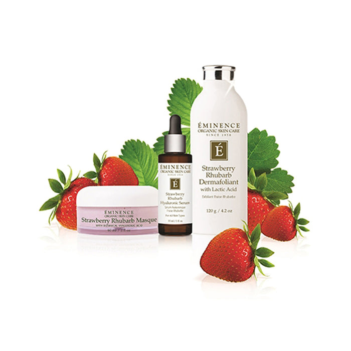Replenish your skins youthful appearance with our Strawberry Rhubarb Masque. The strawberries gently exfoliate while the rhubarb and vegan-friendly hyaluronic acid calm and plump, for a refreshed appearance.Skin appears plumped and hydrated Skin is left soft and appears noticeably smoother The visible signs of aging are reduced Skin appears firmed and revitalized